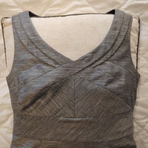 Kuvan mukainen vuoritettu mekko, piilovetoketju selässä.