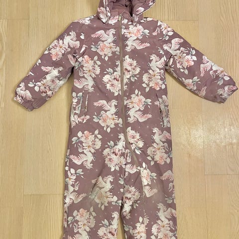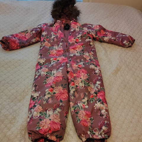 Uusi tummansininen toppahaalari, hyvät ominaisuudet. Vetoketjussa vika, jumittuu alas eli ei aukea aivan loppuun asti - mutta ainakin meidän tyttö sai testatessa puvun puettua silti hyvin. Mieluiten kaupat kasvotusten jotta saa testata vetoketjun. Muuten vetoketju liikkuu aivan normaalisti.
