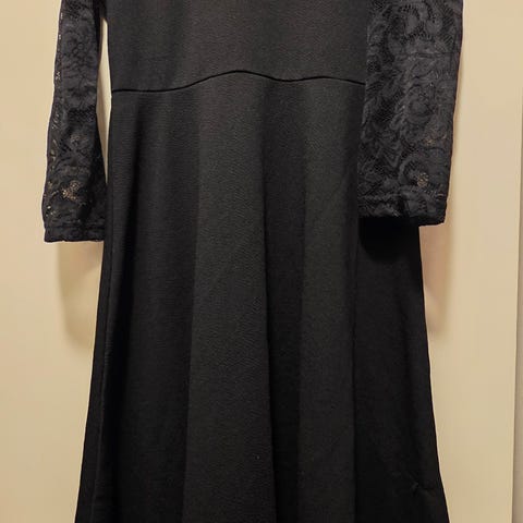 Mekko 10y. Ollut päällä 140cm vaatetta käyttävän päällä. Pidetty vain kerran hautajaisissa