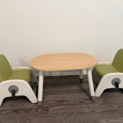Nofred-merkin tyylikäs setti, johon sisältyy pöytä ja 2 tuolia hiiren korvien muotoisella selkänojalla.