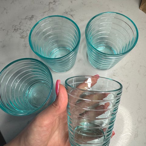 IKEA lasiset juomalasit sinisessä värissä, neljän kappaleen setti × 2