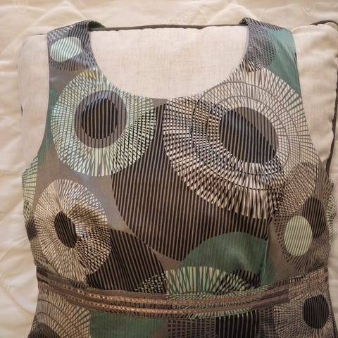 Kuvan mukainen mekko, piilovetoketju selässä, vuoritettu.