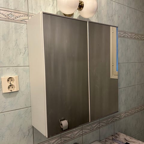 Annetaan uudistettavan kylpyhuoneen kalusteita, kylpyamme 149x70, pesuallaskaappi, pesuallaskaapin yläpuolella sivuilla olleet kaapit, kolme 30x170 kaappia. Kylpyamme ja allas samaa keltaista väriltään, molemmat uuden veroisia. Sekä pesualtaan että kylpyammeen mukana tulevat niissä käytetyt hanat.