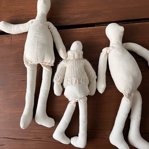Käsintehty pehmolelu dinosaurus, jossa vaaleanpunainen runko ja violetit piikit. Pehmeä materiaali.
