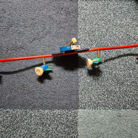 Hauska kattolamppu lastenhuoneeseen. Lampussa on valkoinen ja vihreä plafondi, josta roikkuu kori ja matkustaja. Valaisin kiinnitetään kattoon ja se muistuttaa kuumailmapalloa. Lamppuun sopii kaksi E27 kantaista lamppua.