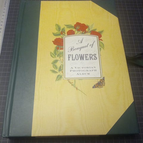 Vintage -90 luvun kukkakoristeinen Henzo,valokuva albumi, jossa taskut valokuville. Sivut koristeellisia kukkakuvioisia. Sivulla rusetti kiinnitys.