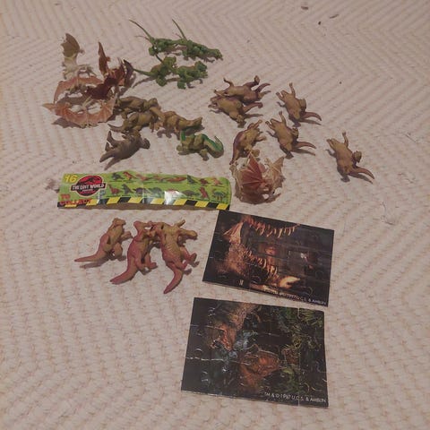 90-luvuta, keräily-mitä-lie-killuttiamis, joissa dinojen kuvia
