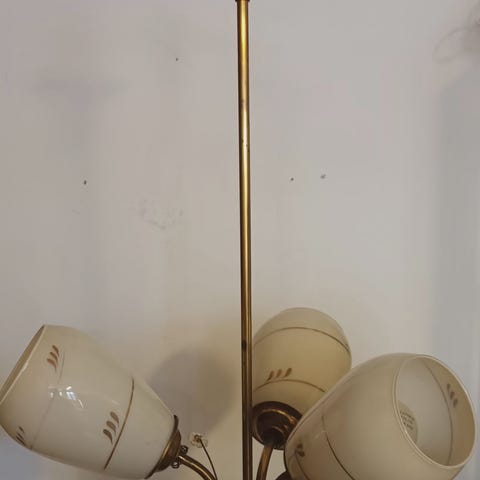 Tyylikäs Sario kattovalaisin, jossa messinkiset yksityiskohdat. Valaisimen muotoilu on ajaton ja se sopii monenlaisiin sisustuksiin. Valmistaja ei ole tiedossa, mutta valaisin edustaa 70-luvun retrotyyliä, joka oli suosittu aikakauden modernissa sisustuksessa. Valaisimen lasikupu on hyvässä kunnossa, mutta messinkiosissa on hieman patinaa, mikä lisää sen vintage-ilmettä. Mukana virtajohto katkaisijalla.