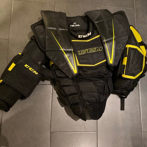 Hyväkuntoinen CCM:n rintapanssari. Tarrat kunnossa. Koko Juniori L.