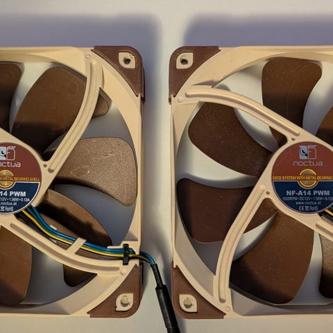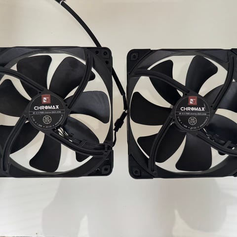 Myydään kaapin pohjalle ja vähäiselle käytölle jääneet Noctuan 140mm NF-A14 PWM chromax.blac.swap -kotelotuuletimet.