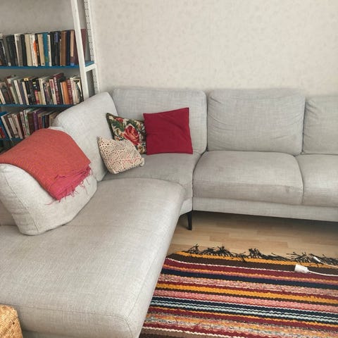 Hyväkuntoinen kulmasohva. Siisti - ei tahroja tai muita jälkiä.