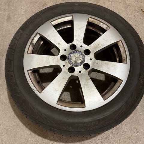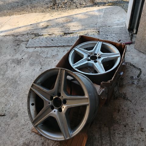 Tuommoiset 17” tuumaset amgit lojuu hallin perällä ja joutais pois. Kumit on kehnot, mutta vanteet suht siistit ja täysin suorat.