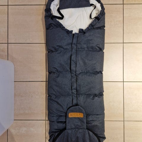 Siistikuntoinen Nordlysin lämpöpussi, jossa täytteenä ihanaa ja lämmittävää untuvaa. Jatkopalan ansiosta menee todella pitkään, vauvasta taaperoon. Vetoketjun maalissa vähän kulumaa, mutta muuten hyvässä kunnossa.