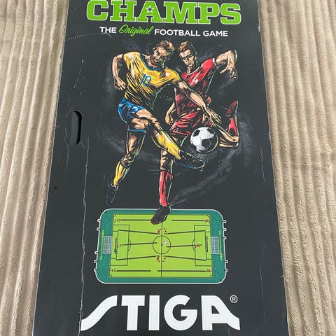 Stigan valmistama retro pöytäjalkapallopeli. Kunnoltaan hyvä, ehjä ja toimiva. Pientä ajan tuomaa kellastumaa joissakin valkoisissa kohdissa.