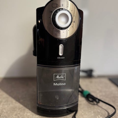 Melitta Molino sähköinen kahvimylly. Varustettu säädettävällä jauhatuskarkeudella ja virtakytkimellä. Soveltuu erilaisten kahvijauheiden valmistukseen, kuten espresso, suodatinkahvi ja pressopannu.