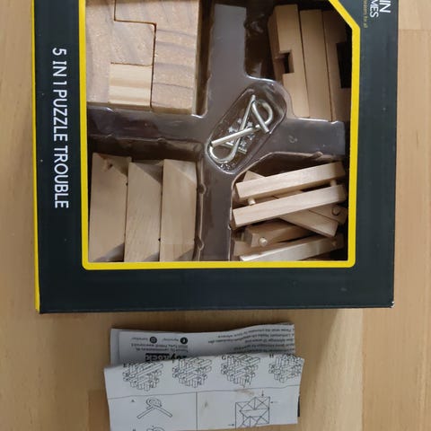 Brain Games 5 in 1 Puzzle Trouble palapeli sisältää viisi erilaista aivopähkinää. Palapelit on valmistettu puusta ja ne on suunniteltu haastamaan ongelmanratkaisutaitoja. Sopii kaikenikäisille käyttäjille.