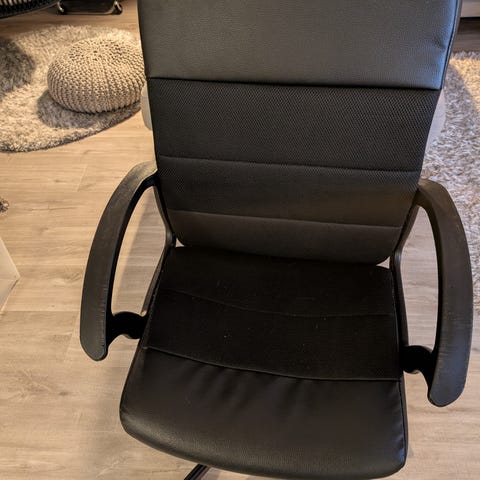 Käytetty hyväkuntoinen ikean korkeus säädettävä tuoli, pyörät toimivat alla.