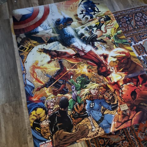 Marvel Avengers sarjakuvajuliste, sekä musta kehys 60 x 90 cm.