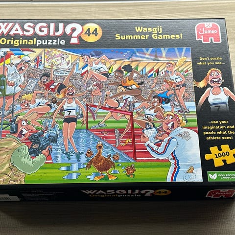 Wasgij - The Puzzlers Arms! palapeli, jossa on 1000 palaa. Palapelin kuva-aihe on monihahmoinen ja värikäs, soveltuu palapeliharrastajille ja koko perheen käyttöön. Kerran kasattu