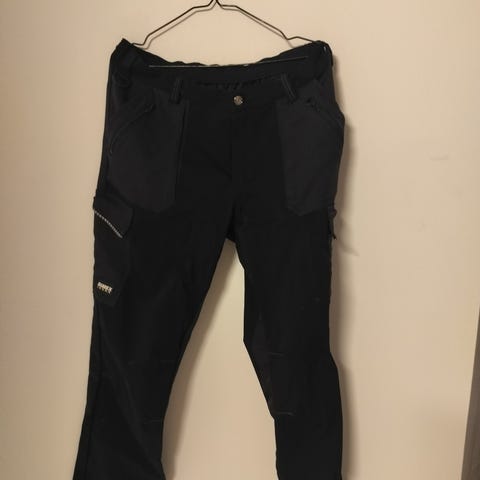 Siistit vähän käytetyt Dimex työhousut joissa avoin reisitasku, tarrareisitasku ja etu ja takataskut ja henkilökorttitasku. Myös cordura vahvistetut polvisuojataskut. Haaroissa ja takana joustavaa ja hengittävää materiaalia. Mukavat jalassa ja ehjät