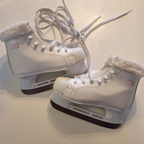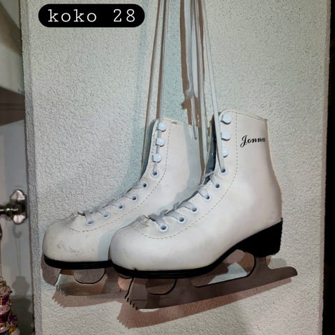 Muuten oikein hyväkuntoiset luistimet, mutta ainoat varsinaiset käytönjäljet näkyvät luistinten kärjessä pieninä pintanaarmuina. Hiljattain teroitettu jääkiekkoliikkeessä.