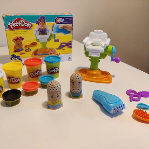 Myydään Play-doh muovailukone parturi/hiussalonki. Kaikki osat tallella. Kunto muutoin erinomainen, mutta leikkuukoneeseen en saanut ääniä kuulumaan