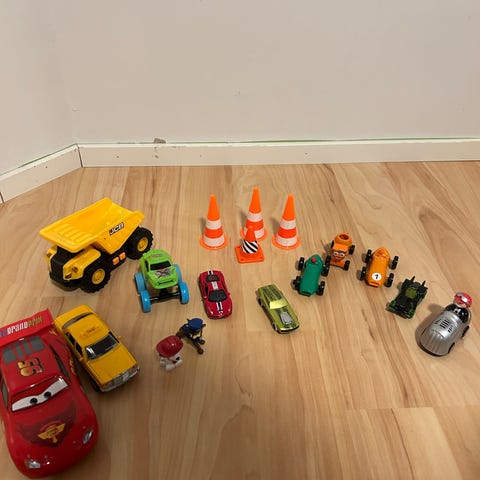 Autonkuljetusrekka Dickie toys pikkuautoillesi, mahtuu 42 autoa. Mukaan 2 pienta autoa, ryhmä hau ja Kaija.