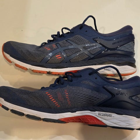 Asics gel kayano 31 juoksukengät, koko 45, musta väri. Sopivat juoksuun ja muuhun urheilukäyttöön. Juostu n. 100 km. Pohjassa pieniä ryppyjä, muuten erittäin hyvässä kunnossa.