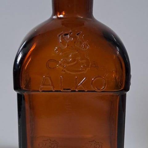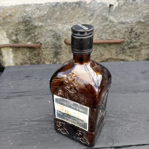 Alko leijona whisky pullo, pohjassa merkintä K2 - eli Karhulan valmistama ilmeisesti. Nouto