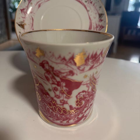 Lomonosov kaakao muki . Made in USSR . Mukin materiaali on posliinia. Sopii käytettäväksi esimerkiksi kahvin tai teen tarjoiluun.