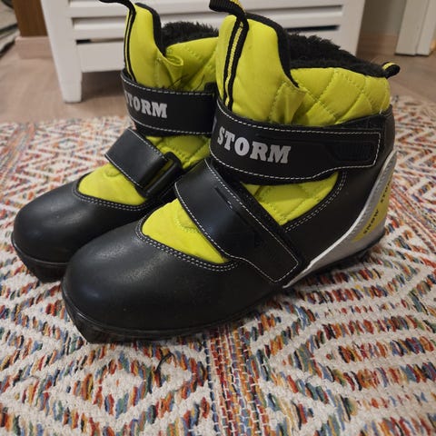 Lasten hiihtomonot koko 34. Kunto erittäin hyvä, ei ole paljon käytetty. 21,5 cm pituinen pohjallinen. NNN-siteisiin sopivat.