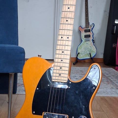 Muutama vuosi sitten heräteostoksena hankkimani Squier Jaguar kaipaa uutta omistajaa. Tämä lyhytskaalainen kitara ei lopulta oikein sopinutkaan telemiehen käsiin. Yksissä bänditreeneissä käytetty ja parilla kotidemolla soitettu vehje on siisti ja toimiva. Squier Wikistä löytää tarkemmat tiedot.