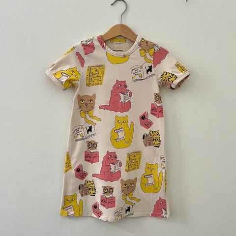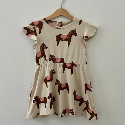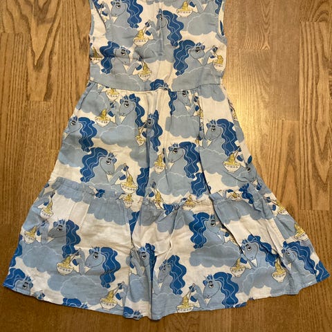 Mini Rodini perhosmekko 104/110. Edessä harmaa tahra, muuten oikein hyvä kunto.
