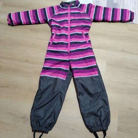 Söpö uusi Remun välikausihaalari 122 cm. Lahkeissa kenkälenkit. Edessä kaksi taskua. Irrotettava huppu. Haalari on vedenpitävä, hengittävä ja saumat ovat teipatut.