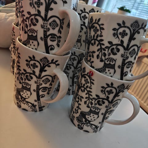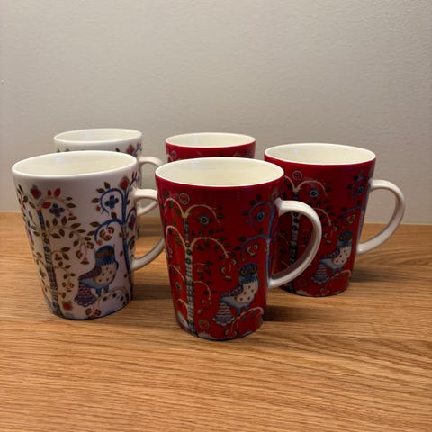 2 kpl kahvikuppeja alustoineen ja 1 kpl tea muki