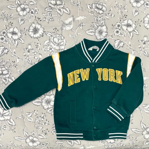 Hyväkuntoinen blaa collegetakki, koko 110/116. Väri jotain sinisen ja vihreän välistä.