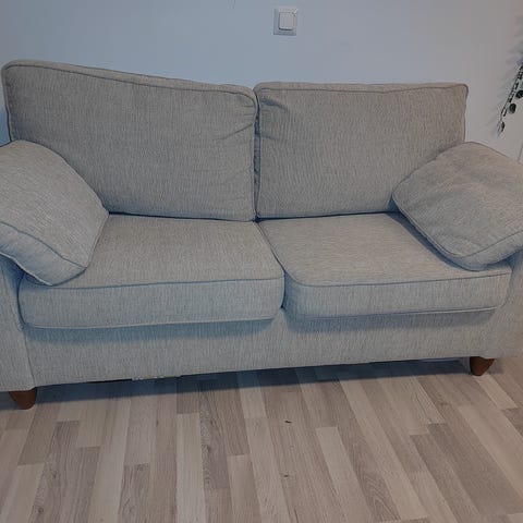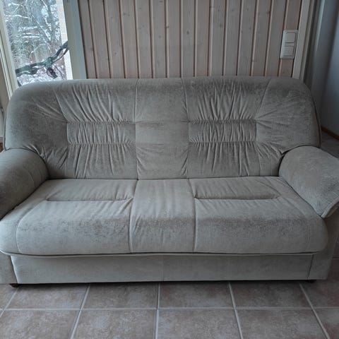 Harmaanruskea vuodesohva. Jotain käytön jälkiä varmasti on ja yhdestä kulmasta kangas rispaantunut (kts kuva). Pesut ja putsaukset jää ostajalle. Vaikea kuvattava, kun on varastosäilytyksessä. Vain nouto.