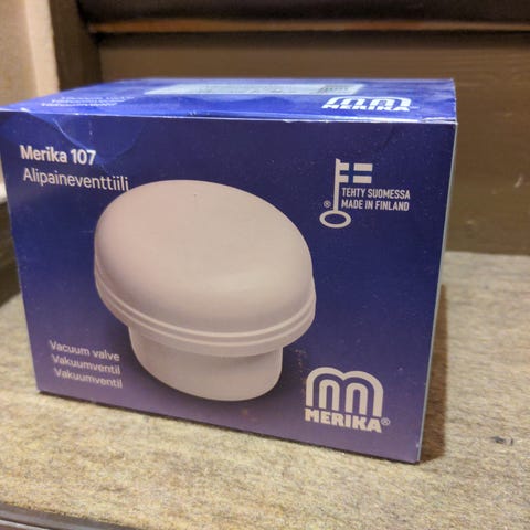Viemärin tuuletuksen alipaineventtiili. Uusi, käyttämätön, alkuperäisessä pakkauksessa.
