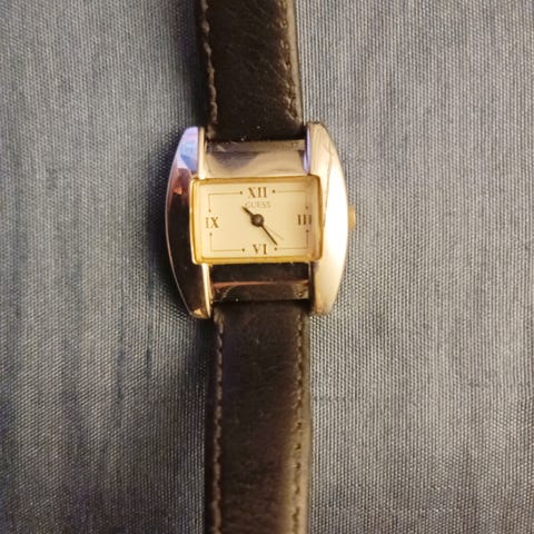Vanha Guessin kello valkoisella rannekkeella. Ei ole käytetty juurikaan ja tällä hetkellä kello ei käy, vaatii varmaan paristojen vaihdon. Muuten kuitenkin hyväkuntoinen.