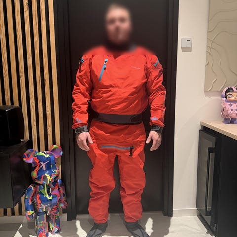 Uuden veroisessa kunnossa oleva kuivapuku xxl kokoa. Mun kokoiselle 185/80 ollut hyvän kokoinen, mutta jäänyt vähälle käytölle. Tosi hyvin istuva puku kyseessä. Parempaa en aikoinaan löytänyt. Melonta kengät saa myös mukaan.