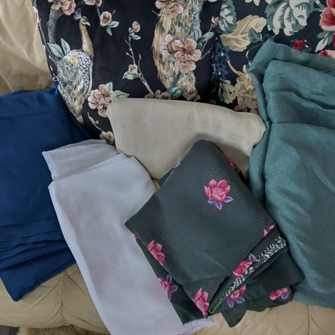Näitä kankaita ei enää meillä tarvita. Valitettavasti lapset kasvavat 😄.