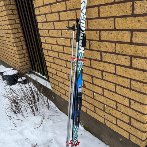 Karhun sukset 158cm, sauvat 120cm ja monot 39