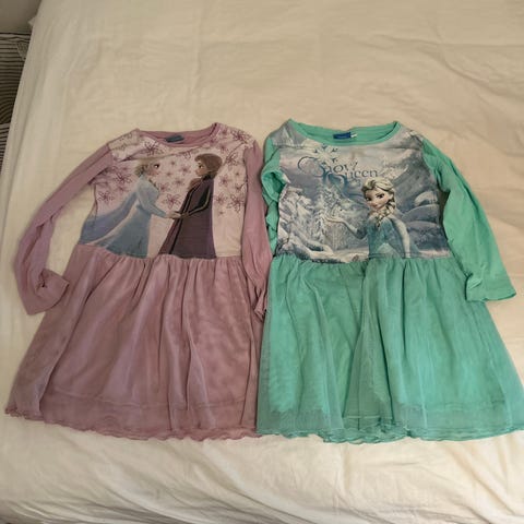 Kuvan mukaiset frozen mekot. Käytettyjä, mutta hyvin menee vielä seuraavalle leikkijälle. Nouto Lauttasaaresta tai postitus.