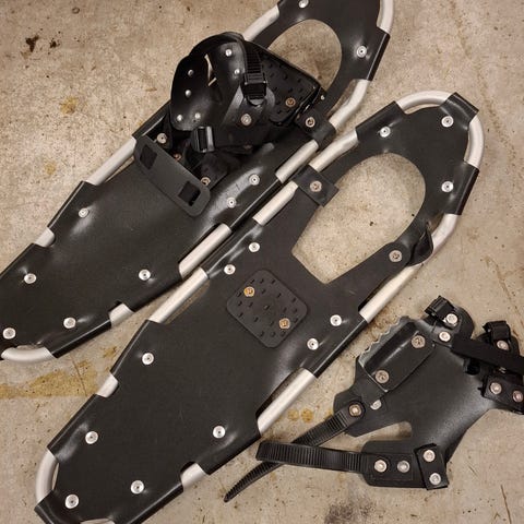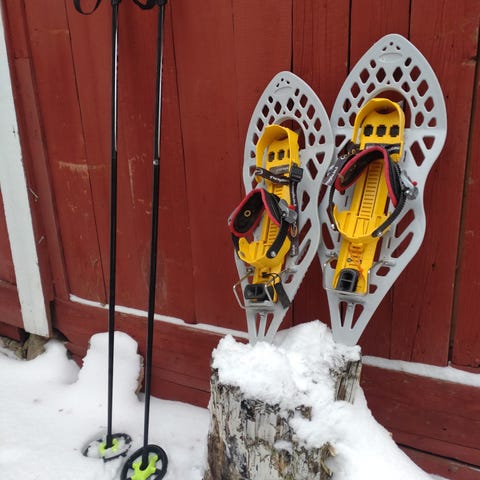 Kuvanmukaiset sauvat lumikenkä-retkeilyyn.