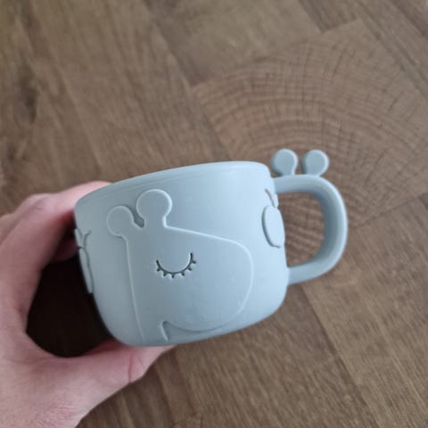 Myydään tarpeettomana Done by Deer Peekaboo napostelupurkki ja lautanen imukupilla.