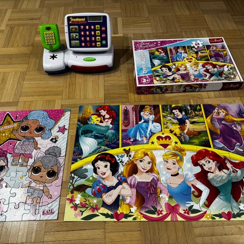 Annetaan lasten palapelejä. En ole aivan varma, puuttuuko jostain pala tms. Saatu itse, mutta eivät tulleet meillä leikkeihin.