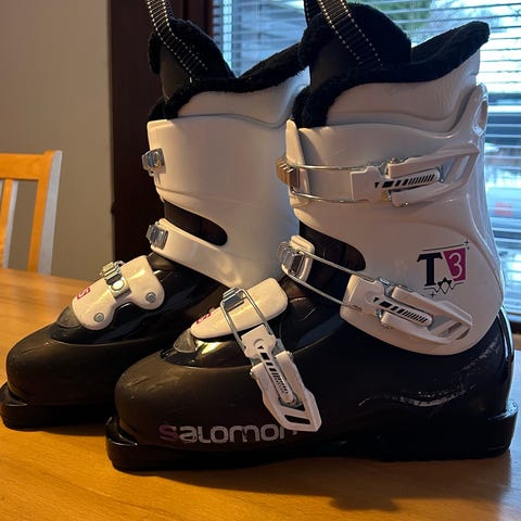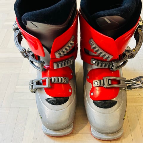 Salomon T3 laskettelumonot lapsille, puna-harmaa väri. Koko 23.0. Ok käytetty kunto. Nouto Lauttasaaresta.