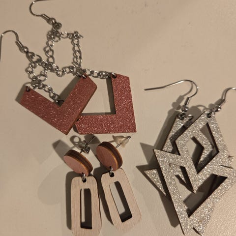 Maanantaimallin glitter liilat / laventeli väriset korvakorut.