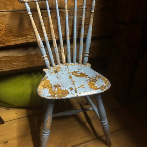 Vanha tummansininen tuoli.