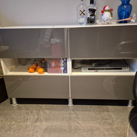 Bestå-kaappi kiiltävillä ovilla, 120x64x42